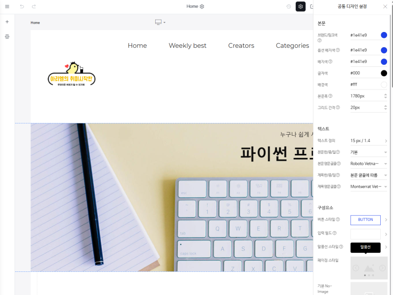 예를 들어 메인 페이지에 배너 이미지를 넣고, 그 아래에 브랜드 소개를 배치하는 작업을 하면 끝이지요. 이미지 크기나 위치, 글자 스타일도 화면에서 바로 수정할 수 있었고 결과가 즉시 반영되었답니다. 이런 방식 덕분에 쇼핑몰 만들기 과정이 어렵다는 느낌은 크게 들지 않았어요.